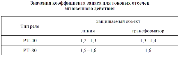 Для реле РТ-40, РТ-80, РТ-90 k З= 1,1–1,2, k В= 0,8–0,85 [4].