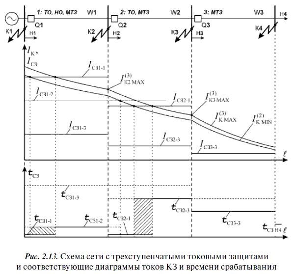 Выдержки времени срабатывания защит должны нарастать по мере приближения к источнику питания: t С31> t C32 > t C33 > t C3H4.