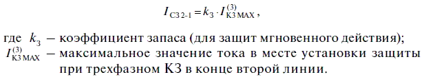 k З– коэффициент запаса (для защит, имеющих выдержку времени);