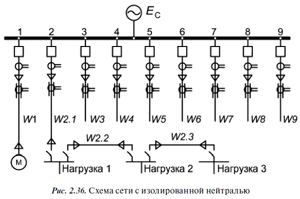 Здесь I СW– суммарный емкостной ток всей сети; I СWK– емкостной ток присоединения с номером К, на котором установлена защита; I С3WK– ток срабатывания защиты, установленной на присоединении К.