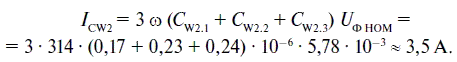 Здесь C W2.1= 0,17 мкФ; C W2.2= 0,23 мкФ; C W2.3= 0,24 мкФ – емкости отдельных участков кабельной линии W2, значения которых получены путем умножения удельной емкости кабеля на длину участка линии [9].