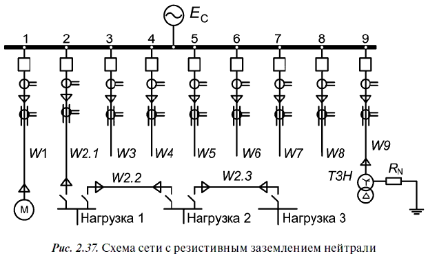 Защита от однофазных замыканий на землю, способная действовать селективно, в электрических сетях с резистивным заземлением нейтрали может быть выполнена по принципу контроля тока нулевой последовательности в присоединениях (так же как и в сетях с изолированной нейтралью).