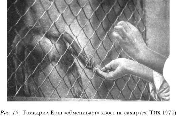В результате достаточно долгой процедуры условно-рефлекторного дифференцировочного обучения шимпанзе успешно освоили соответствующие реакции и активно использовали жетоны для получения одного из предъявляемых им лакомств – в зависимости от преобладавшей на тот момент потребности (рис. 17).
