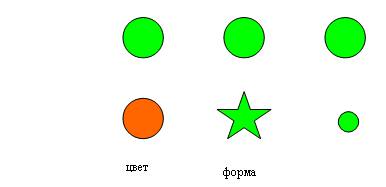 Здесь s(x) – картинка, на которую в данный момент смотрит перципиент – зеленый круг или оранжевый прямоугольник,