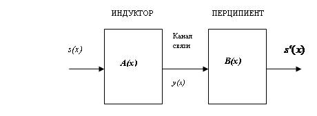 В связи с принятыми обозначениями стоит напомнить алгоритм работы перципиента: перед ним лежат две картинки (на рисунке они опущены) и ту из них, которую он идентифицировал, будем считать выходным сигналом всей системы. На самом деле так оно и получается, если индуктор и перципиент образуют оптимальную пару. Запишем теперь уравнение всего тракта передачи, при этом помехи в канале мысленной связи – n(x), будем считать незначительными.