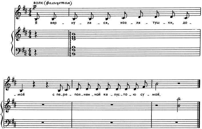 ВЕДУЩИЙ. Вдруг в дверь постучали. Кто бы это мог быть? Уж не Волк ли?
