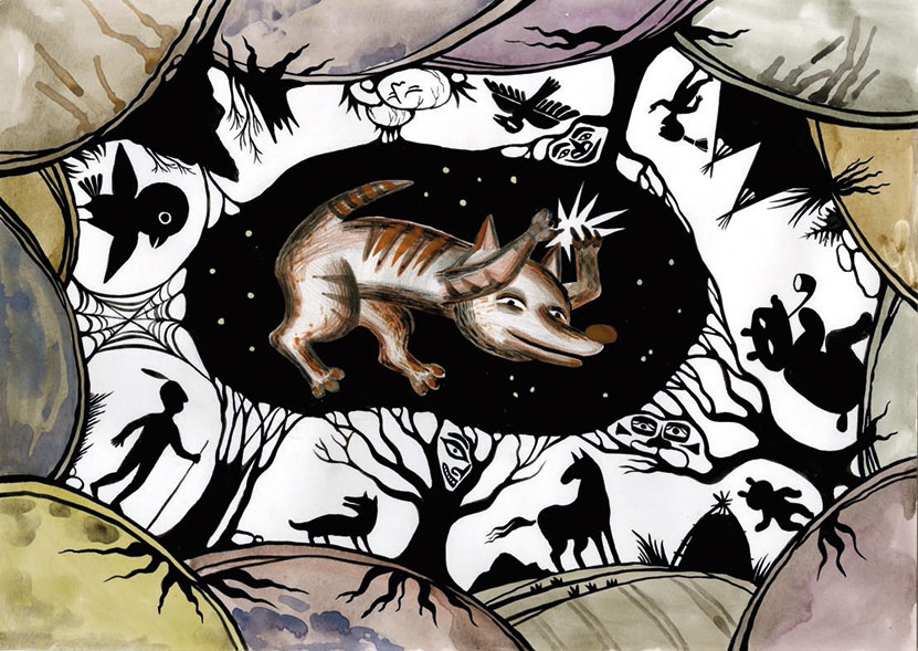 Звезда послушалась и спустилась. Ухватился койот за неё, и звезда подняла его в небо. Носится звезда по небосводу: то вверх поднимется, то вниз опустится, – устали у койота лапы, совсем занемели.