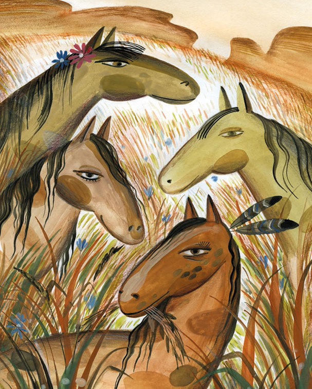 Так все десять ночей оставлял он своего каурого за холмом, а тот приводил ему разных коней – серых, вороных, гнедых… И каждый из них был красивее, чем те, что поуни когда-либо имели у себя в племени.