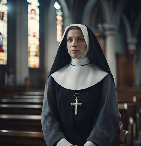Монашка приоткрыла дверь, заглянула внутрь, и тихонько прошептала: