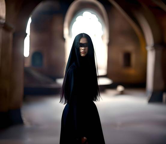 По пути в свою комнату, заметил одну из монашек в чёрном балахоне, с распущенными длинными волосами до пояса, идущую по коридору прямо в мою строну. Остановился, готовясь завести непринуждённую ночную беседу, но так ни слова и не произнёс, глядя как она прошла мимо меня с завязанной чёрной повязкой глазами. Да уж… И как она так уверенно ориентируется и передвигается, не видя ничего перед собой? Хотя, тут один коридор и пара поворотов, даже слепой не заблудится. Но зачем ей повязка?