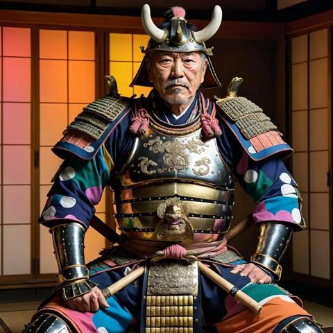 Колоритный старик – лет шестьдесят, сильный, суровый, властный, в традиционном японском доспехе, шлеме с рогами и катаной на поясе. Интересно, он всегда так ходит, или по случаю праздника приоделся?