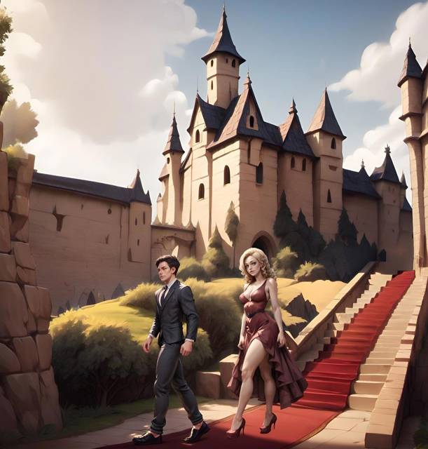 Из роскошной кареты выбралась симпатичная молодая дама, облачённая в шикарное пышное платье, прошла по ковровой дорожке в сопровождении совсем молодого, стройного, можно сказать щуплого, юноши, и склонила голову перед хозяином земель, став чуть ли не на колено перед герцогом.