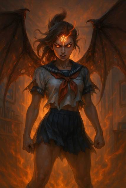 Пентаграмма на лбу юной суккубы полыхнула жаром, а за спиной взметнулись огромные рваные демонические крылья.