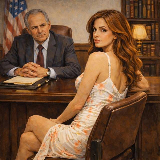 Большой стол из тёмного дерева, флаг у стены, аккуратные стопки папок, запах кофе и бумаги. Спиной к нам на простом деревянном стуле сидела Матушка Сара, скромно сложив руки на коленках. Напротив Матушки за столом расположился хозяин кабинета, мужчина лет пятидесяти, с усталым лицом и внимательным, цепким взглядом, лениво откинувшись в массивном кожаном кресле.