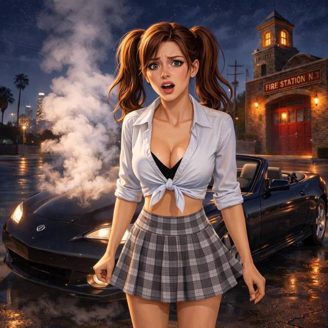 Девушка в панике забегала вокруг авто, громко цокая каблуками по асфальту, что-то выкрикнула, взмахнула руками и растерянно завертела головой по сторонам в поисках помощи. Наткнулась взглядом на возвышающееся чуть позади неё здание пожарного депо, которое она проехала пару минут назад, и, смешно перебирая ножками, рванула в сторону базы Воронов.
