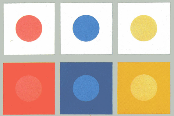 В практике изобразительного искусства наиболее часто приходится иметь дело с ахроматическим (или световым) контрастом, содержание которого хорошо известно каждому. Явление светового контраста даже нашло отражение в поговорке: «чем ночь темней, тем звезды ярче». Суть явления в том, что светлое пятно на темном фоне кажется еще более светлым, а темное на светлом – темнее, чем оно есть на самом деле. В первом случае явление контраста носит название положительного, во втором – отрицательного. Если какое-либо пятно окружено другим более светлым или темным, его называют «реагирующим полем», а фон – «индуктирующим полем». Реагирующее поле всегда изменяет свою светлоту в ту или иную сторону более заметно, чем индуктирующее. На первый взгляд кажется, что эффективность контраста находится в прямой зависимости от разницы в светлоте между индуктирующим и реагирующим полями. Однако элементарные наблюдения показывают, что при чрезмерно больших яркостях действие контраста заметно ослабевает.