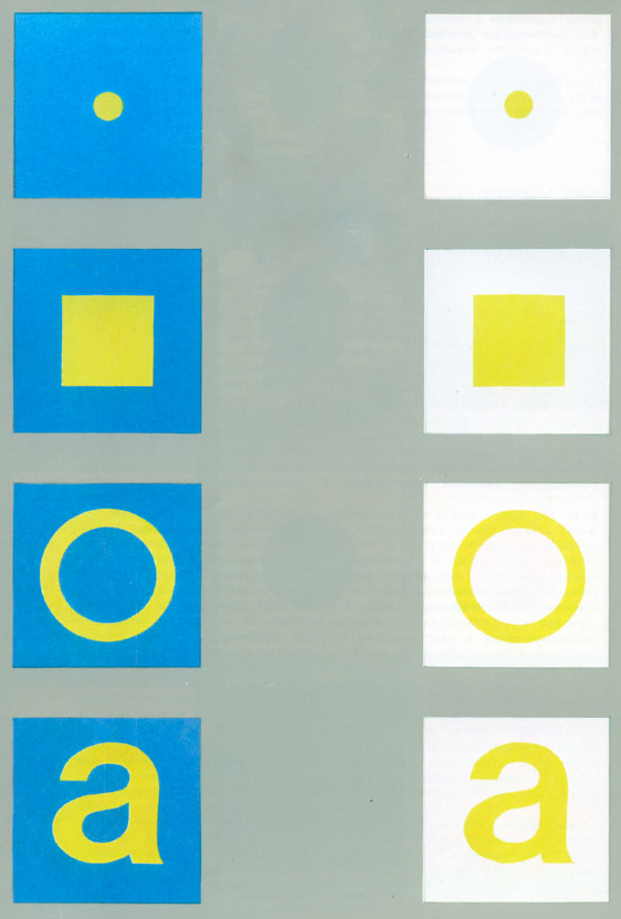 Таблица 12. Монохроматический контраст. От индуктирующего поля зависит эффективность контраста по светлоте, цветовому тону и насыщенности