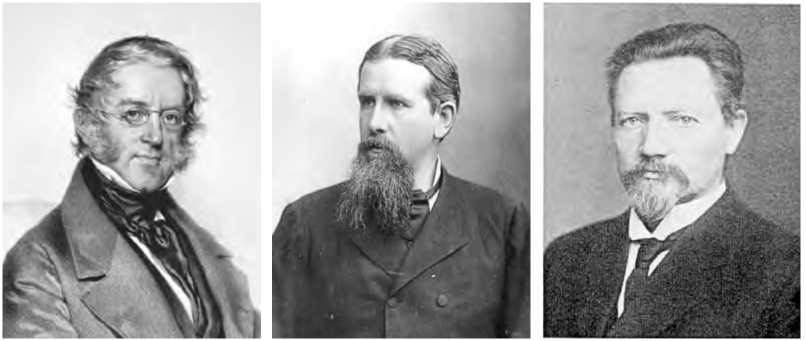 Карл Риттер (слева), Фридрих Ратцель (в центре) и Рудольф Челлен (справа) считаются основоположниками современной геополитики. Все они были академическими учеными, которые пытались найти общую взаимосвязь между политическим развитием государств и географическими характеристиками территорий, которые занимали эти государства.