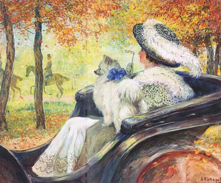 Алексей Никанорович Комаров (1879–1975) Шпиц комнатный шелковистый 1946. Холст, масло. 82x98