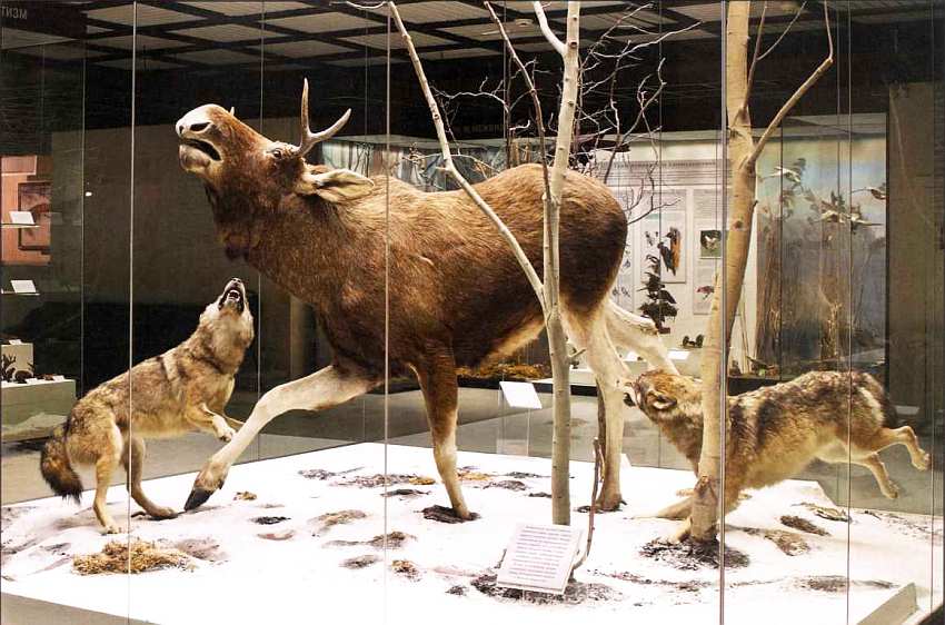 Биогруппа «Волки, нападающие на лося» Таксидермист – Н. К. Назьмов