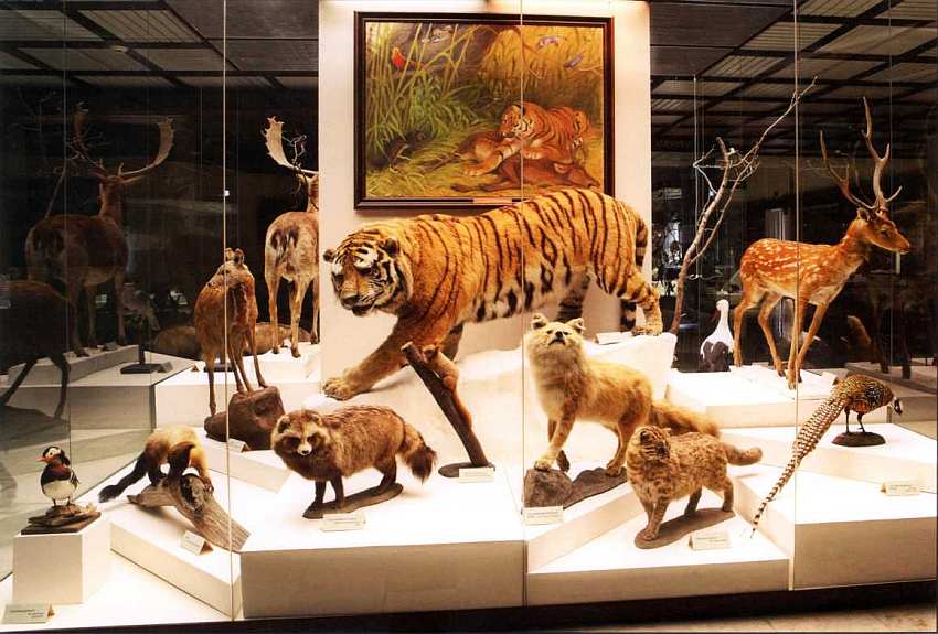 Таксидермические экспонаты представляют интерес как с точки зрения естественной истории, так и истории культуры и искусства. Первые приемы обработки звериных шкур осваивали еще первобытные люди. Таксидермия долгое время была ремеслом, обеспечивающим сохранность шкур добываемых животных, использовавшихся кроме прочего в ритуальных целях. Термин произошел от греческого «таксис» – приготовление, обработка и «дерма» – шкура, кожа.
