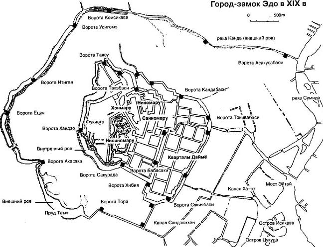 Иэясу в Никко, что в нескольких милях к северу от Эдо. Для этого воспользовались хитроумным предлогом: Иэясу получил посмертный титул гонгэн(буддийское божество), а потому на месте его погребения надлежало проводить регулярные государственные церемонии, на которые даже император обязан был посылать своих официальных представителей.