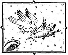 «Рассказывают, что пара голубей наполнила свое гнездо зернами ячменя и пшеницы. И голубь сказал голубке: «Если мы найдем в степи пищу, то не будем трогать наших запасов, а когда придет зима и все травы и семена иссохнут или сгниют под ливнем, мы вернемся в наше гнездо и съедим ячмень и пшеницу». И голубка, согласившись с мнением своего супруга, сказала: «Ты хорошо придумал». Когда голуби принесли зерно и сложили его в гнездо, оно было еще сырое. Весной голубь улетел далеко в степь, покинув в гнезде голубку, и пробыл вдали от своего дома до наступления лета. Тем временем под горячими лучами солнца зерно высохло, как будто его стало вдвое меньше. Вернувшись, голубь увидел, что зерна не хватает, и, обратившись к голубке, крикнул, рассерженный: «Разве мы не договорились не есть зерно и не трогать наших запасов? Почему же ты съела половину?» Голубка клялась, что не коснулась заветных запасов, плакала и рыдала, но голубь не поверил ее рыданиям и клятвам и заклевал ее до смерти. На следующий день небо затянуло тучами и пошел сильный дождь, зерно вобрало в себя влагу и разбухло, так что его стало столько же, как было прежде. Увидев это, голубь понял, что несправедливо убил свою верную подругу, и раскаялся. Он лег рядом с телом мертвой голубки и сказал: «Ни к чему мне ячмень и пшеница, и зачем мне жить, если я позову тебя, а ты не отзовешься, и я ничего не смогу с этим сделать! Стоит мне подумать о тебе, как меня гложет воспоминание о том, как я был несправедлив, погубив тебя безвинно, но мне не под силу исправить свою ошибку, искупить вину и вернуть то, что миновало». Голубь долго печалился и грустил, не ел ни зернышка и не пил воды, пока не умер, лежа рядом со своей голубкой.