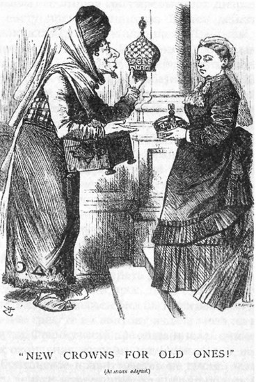 Билль о королевских титулах показал, что предложение, которое могли счесть вполне безобидным, исходи оно от любого другого политика, вызывало подозрение, если его автором выступал Дизраэли. В романах он часто распространялся о своей любви к Востоку, о «великой азиатской тайне» и о том, что горд принадлежностью к восточному народу. Все это позволило его противникам увидеть в новом титуле королевы свидетельство замысла Дизраэли превратить Британскую империю в восточную деспотию. Читатели «Танкреда», в частности, могли вспомнить сцену, в которой Фахредин с жаром советует: «Пусть королева Англии соберет большой флот, погрузит на корабли все свои сокровища, золотые и серебряные слитки, драгоценную посуду и оружие и в сопровождении всего двора, вельмож и министров переедет из Лондона в Дели, новую столицу империи». Эта речь писалась как чисто комедийная, как пример бессмысленных планов не знавшего удержу Фахредина. Но теперь, когда Дизраэли имел реальное влияние на королеву, эти слова приобрели зловещий смысл.