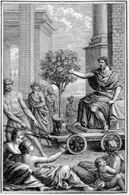 Рис. 13.4. Лукулл впервые привозит в Рим вишневое дерево. Journal des gourmands, Париж, 1806–1807