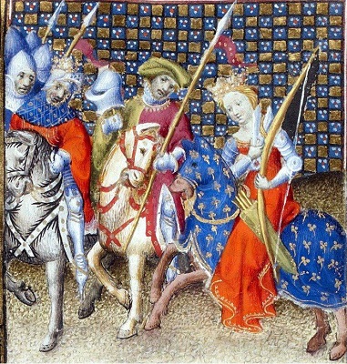 Рис. 14.3. Митридат в сопровождении Гипсикратии (и Битуита?). lies dames de renom. De mulierbus ciaris / Hypsicratea. Frangais 598, фолио 116, Национальная библиотека Франции