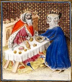 Рис. 14.4. Дрипетина прислуживает Митридату за едой в Синоре. Des dames de renom, De mulieribus claris/Drypelin. Frangais 598, фолио 113v, Национальная библиотека Франции
