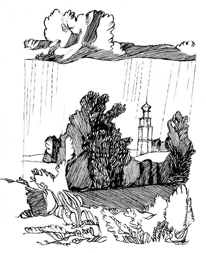 Повиснул дождь, как легкий дым, –