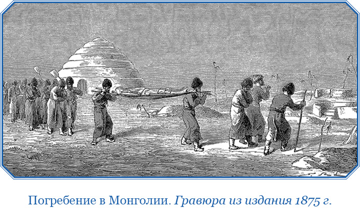 [Закрыть]. Если умерший – ребенок, то он входит только по истечении месяца. Возле погребения усопшего они оставляют всегда один его дом, если он из знатных лиц, то есть из рода Чингиса, который был их первым отцом и государем.