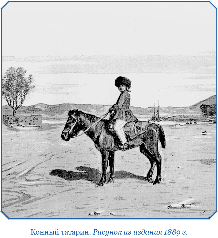 Русские женщины убирают головы так же, как наши, а платья свои с лицевой стороны украшают беличьими или горностаевыми мехами от ног до колен. Мужчины носят епанчи, как и немцы, а на голове имеют войлочные шляпы, заостренные наверху длинным острием. Итак, мы шли пешком три дня, не находя народа, и, когда сильно утомились сами, а равно и быки, и не знали, в какой стороне можем найти татар, прибежали внезапно к нам две лошади, которых мы взяли с великою радостью, и на них сели наш проводник и толмач, чтобы разведать, в какой стороне можем мы найти народ. Наконец на четвертый день найдя людей, мы обрадовались, как будто после кораблекрушения пристали к гавани. Тогда, взяв лошадей и быков, мы поехали от становища к становищу, пока 31 июля не добрались до местопребывания Сартаха.