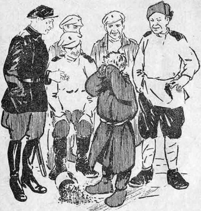 Повели молодчика. Накормили. Повеселел мальчишка, а лицо все такое же глупое, чумазо-сопливое. Даже сердобольный поручик, сплюнув, сказал.