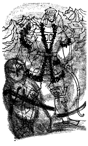 Хабрау нехотя, только чтобы уважить старцев, взял домбру, начал перебирать струны, и тускло, лениво прогудели они. Но вдруг проснулась домбра, встрепенулись струны, быстрее побежали пальцы, и мелодия, новая, дотоле неслыханная, лилась все сильней и звучней. Поникнув сидели гости. Горький, жгучий ком стоит в горле Хабрау, слезы бегут из глаз. Вот он, словно распаленный конь, мотнул головой, распрямились, разошлись плечи, искры сверкнули в глазах. Гордый его взгляд скользнул по старцам – и он начал говорить кубаир, совсем новый, никому из слушателей не ведомый, сэсэн его сочинил в дни своего тоскливого одиночества.