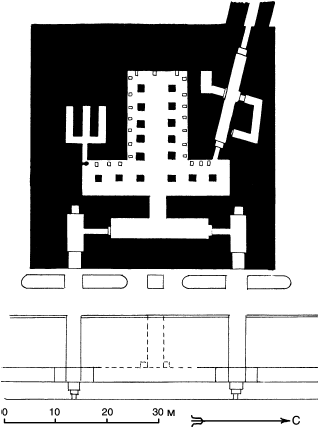 Рис. 38. План нижнего храма при Второй пирамиде в Гизе