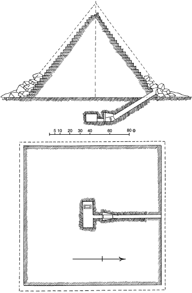 Рис. 46. План и разрез пирамиды Менкауры
