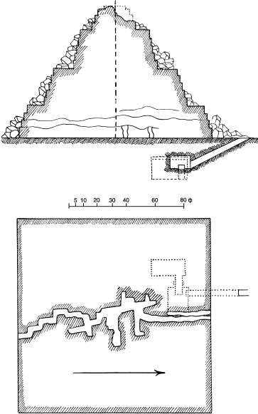 Рис. 43. План и разрез самой восточной из трех малых пирамид