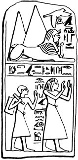 Рис. 51. Стела с изображением сфинкса и двух пирамид в перспективе
