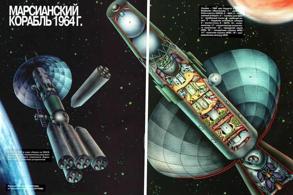 Причины разрушения марсианского, а вместе с ним и лунного проектов не следует искать в нашей общей экономической отсталости или нехватке финансовых средств… Денег, потраченных на «лунные капризы» Хрущева, на бессмысленную разработку комплекса «Энергия-Буран», на тридцатилетние прогулки по околоземным орбитам с зарубежными друзьями, хватило бы, чтобы слетать не только на Марс, но и на Юпитер. [причина в том, что «Энергией» и подобным] удовлетворялись прихоти приближенных к власти главных конструкторов [намек на Глушко], пожелавших сделать свои собственные космические ракеты и корабли или самые мощные в мире ракетные двигатели, или еще что-нибудь сделать впервые в мире'.