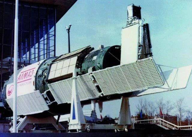 ОПС «Алмаз» имеет термоизолированный гермокорпус, в носовой части которого находился бытовой отсек, затем шел рабочий отсек с пультом управления, а следом сферическая шлюзовая камера с пассивным узлом стыковки для ТКС и двумя люками: верхним – для выхода в открытый космос и нижним – для сброса через специальную пусковую камеру возвращаемых на Землю капсул с информацией. Вокруг шлюзовой камеры размещались агрегаты двигательной установки, антенны и две панели солнечных батарей.
