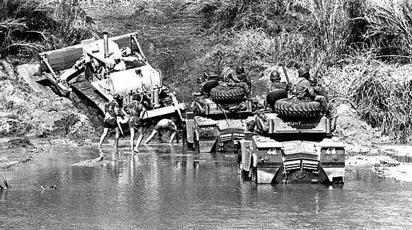 Родезийский Бронетанковый полк в качестве наземного элемента операции вначале столкнулся с непредвиденными трудностями. Конвой состоял из немецких грузовиков «Unimog», броневиков «Eland» с их 90-мм орудиями, бронетранспортеров «Puma», 25-фунтовых артиллерийских орудий и бронемашин Скаутов Селуса «Pig». Переход границы Мозамбика оказался крайне проблематичным. Грузовики и бронетранспортеры, отягощенные десантом, артиллерией и провизией, увязли при попытке переправиться через реку. В конце концов, бульдозеру пришлось тащить каждую машину и БТР по отдельности, при этом полевые орудия, буксируемые БТР «Puma», были особенно неудобными и в результате именно они сильно повлияли на то, что колона не успевала к назначенному времени выступления.