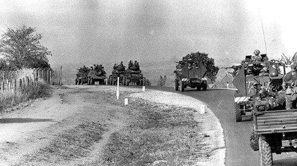 Родезия, размером примерно с Калифорнию, столкнулась с войной на четырёх фронтах: вторжениями ЗАНУ на северо-восток и восточные нагорья из Мозамбика, террористическими атаками ЗАПУ на северо-западе и ограниченным терроризмом и вербовкой, осуществляемыми преимущественно ЗАПУ вдоль западной границы с Ботсваной. Только 350 километров границы с ЮАР можно было назвать дружественными по отношению к Родезии.