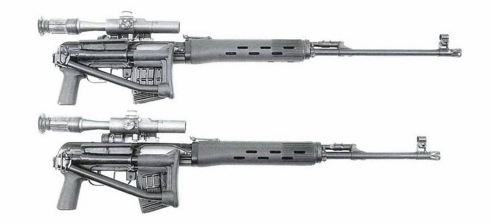 – Автоматическая винтовка В-70 предназначена для автоматического снайперского огня. Создана на основе СВД, получила новый ударно-спусковой механизм, укороченный и утолщённый ствол, лёгкие складные сошки, магазины увеличенной ёмкости, изменённый пламегаситель с функцией компенсатора и ряд других отличий. Всё это позволило получить автоматическое оружие с темпом стрельбы 720 либо 850 выстрелов в минуту. Для этого газовый регулятор имел два положения стрельбы. В комплекте 20-местный магазин и сошки.