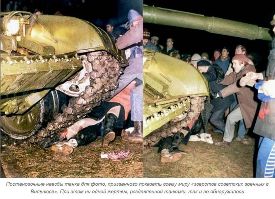 Десятки телеоператоров в заранее расставленных позициях обозревали «битву за свободу». Работали москвичи, немцы и шведы. И боевые машины в итоге прошли мимо людей. Иначе случилось бы много жертв. Группа «Альфа» тем временем, двигаясь на «ЗИЛ 131» и пользуясь тем, что митингующие отвлечены, подкатила к башне не с тыльной стороны и влетела внутрь для зачистки, взяв в течение двадцати минут ситуацию с трансляцией по ТВ Литвы под контроль. Затем сверху раздались выстрелы. Началась паника, офицеры громогласно отдавали приказы не отвечать, да и нечем было. Кто-то из солдат упал навзничь, падали и гражданские. Репортеры жадно бежали снимать вплотную «жертвы режима».