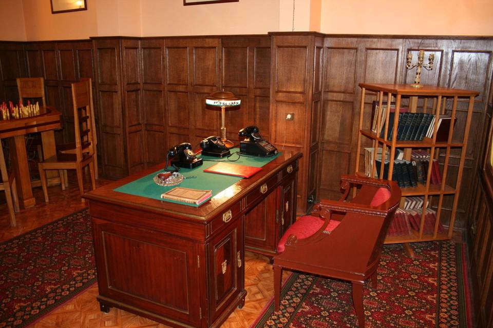 Пока жду чай, рассматриваю кабинет. А он с историей и не всегда хорошей. Некие флюиды ощутил, когда вошел. Тут каждый сантиметр впитал человеческий страх. Перед пыткой, перед болью. Высокие мысли соседствовали с поистине животной свирепостью. К огромному сожалению могу констатировать, что такие кабинеты в развале Союза виноваты не менее, чем враги. Перестарались. Но размеры не особо поражают. И все в нем подчеркивает функциональность и высокий статус. Темные деревянные панели, тяжелые портьеры. Массивная люстра и настольная лампа с зеленым абажуром, монументальный дубовый стол начальника с письменными приборами и календарем. Что характерно – никаких бумаг на нем нет. Видимо, все в сейфе, что стоит в углу. Обилие телефонов на боковом столике. Длинный стол для совещаний у окна. Неизменный портрет И. В. Сталина, ковры на полу, скрадывающие звуки. Невольно погружаюсь в атмосферу могущественного ведомства. Бесшумно появляется помощник и ставит передо мной чай в неизменном подстаканнике, в нем плавает долька лимона.