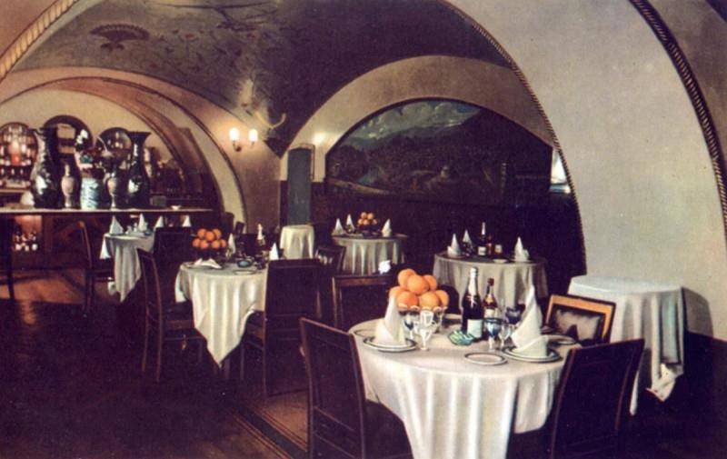 Меланхоличные размышления не мешают мне с аппетитом кушать. Готовят тут… «Пальчики оближешь»! Ресторан «Арагви», открытый в 1938 году на Тверской 6, располагался в здании бывшей гостиницы «Дрезден». В 1940-е годы стал легендарным центром советской элиты и грузинской кухни. В годы войны это было престижное место, посещаемое высокопоставленными военными, культурной элитой и иностранцами, предлагавшее изысканные блюда в атмосфере неприличной роскоши. Здесь были лучшие мясные яства в столице. Свежая зелень и овощи доставлялись в ресторан два раза в неделю спецбортом прямиком из Грузии. Свежую телятину и курятину ежедневно подвозили из Подмосковья, а лаваш выпекали в тандыре, установленном во внутреннем дворе ресторана.