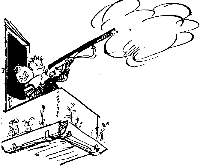 Вдруг на балкон выскочили братья башибузуки и как шарахнут вдвоем из отцовой двустволки. Мы так и посыпались с бревен. Витька закрыл кобеля своим телом.