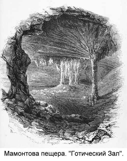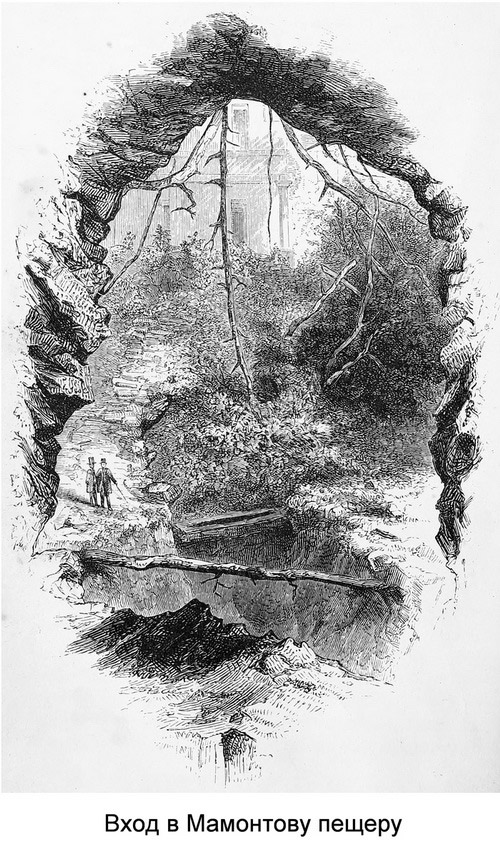 Я покинул поезд, чтобы до отеля «Mammoth Cave» миль десять проехаться верхом. Расположенный в самом центре ухоженной полянки, затененной величественными дубами и стройными соснами, он вырисовывается огромным и белым, длинным и невысоким одноэтажным строением, с глубоким портиком, и известным под названием «Коттеджи».